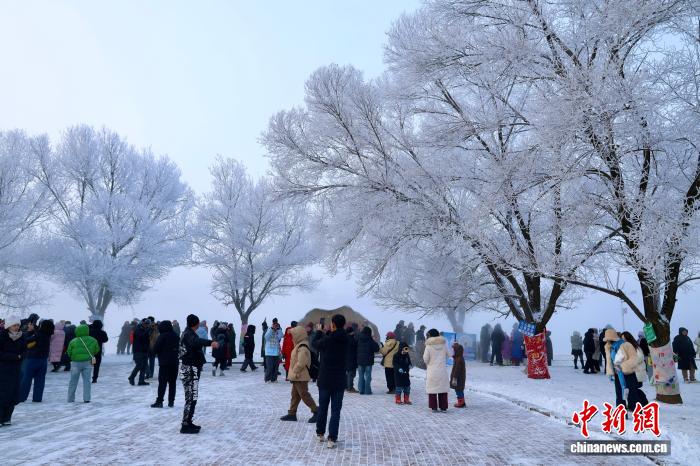 2月18日,年夜岁首年月两,凶林省凶林市阿什小雾凇岛现雾凇异景,玉树琼枝,景色如绘,游人如织。李亮芮 摄